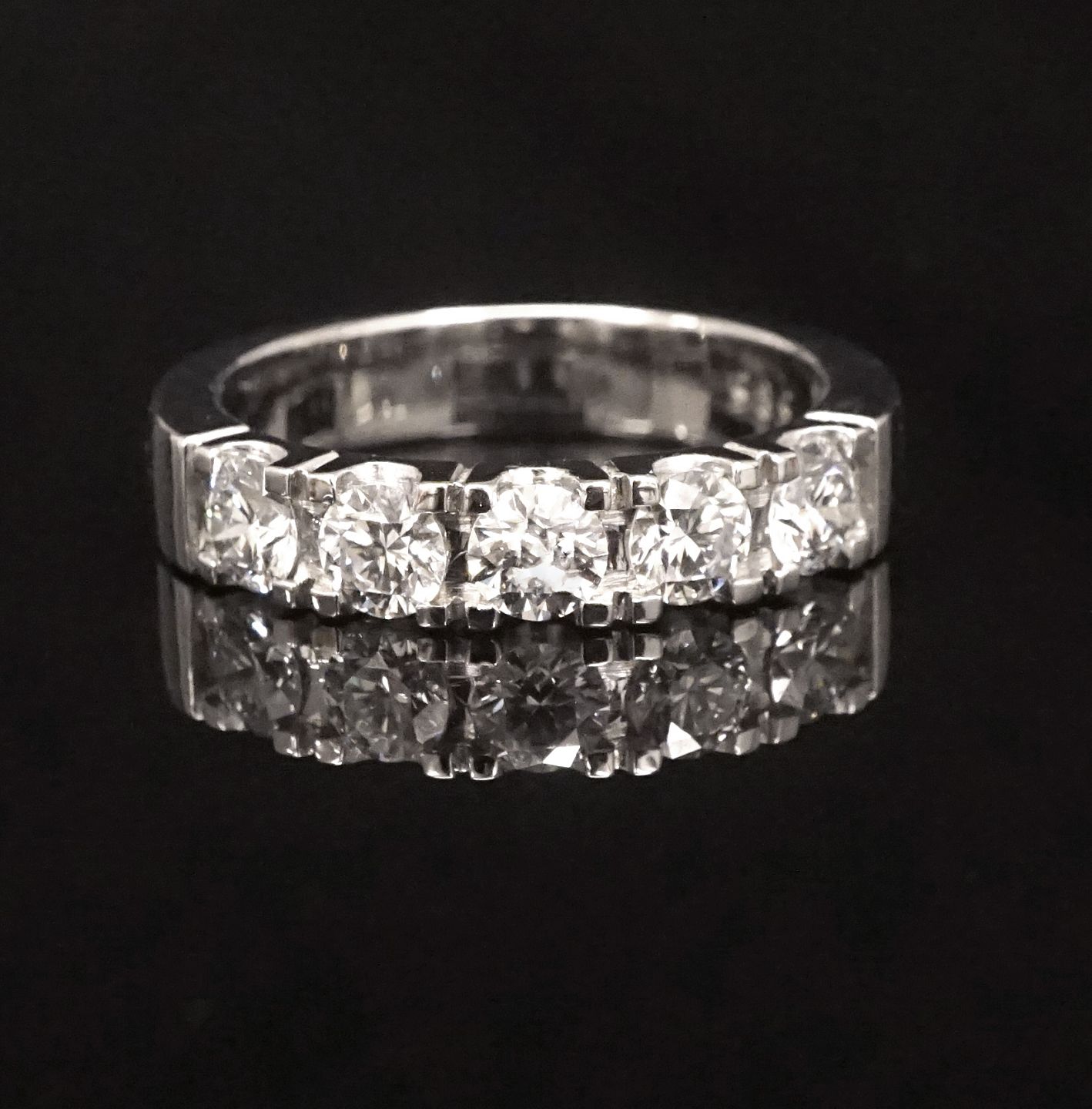 A 14kt of whitegold ring with five 0,1ct labgrown diamonds. Ringsize 54-55