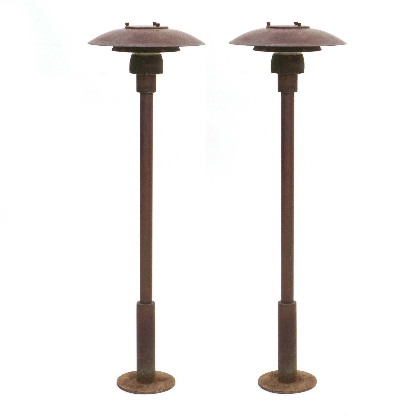 Pair of Poul Henningsen PH 3/2,5 copper garden lamps: H: 90cm