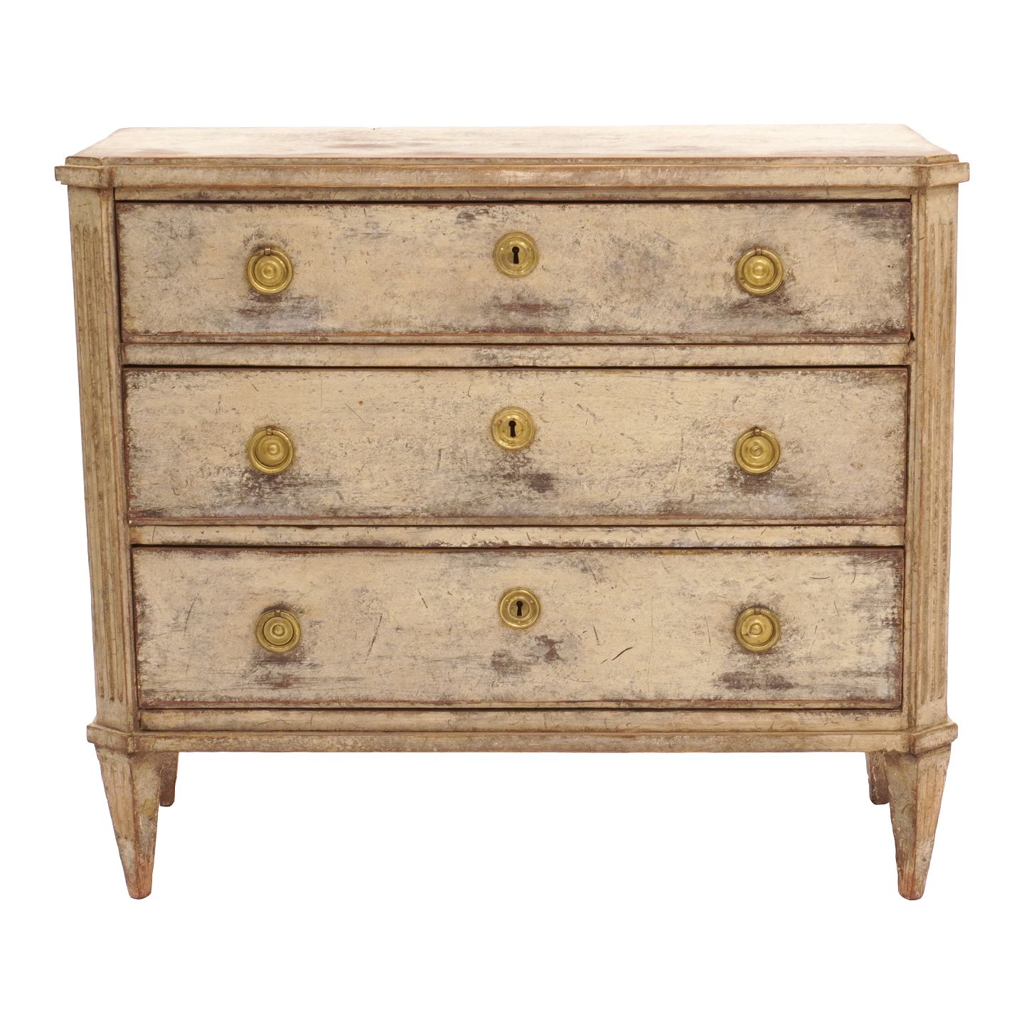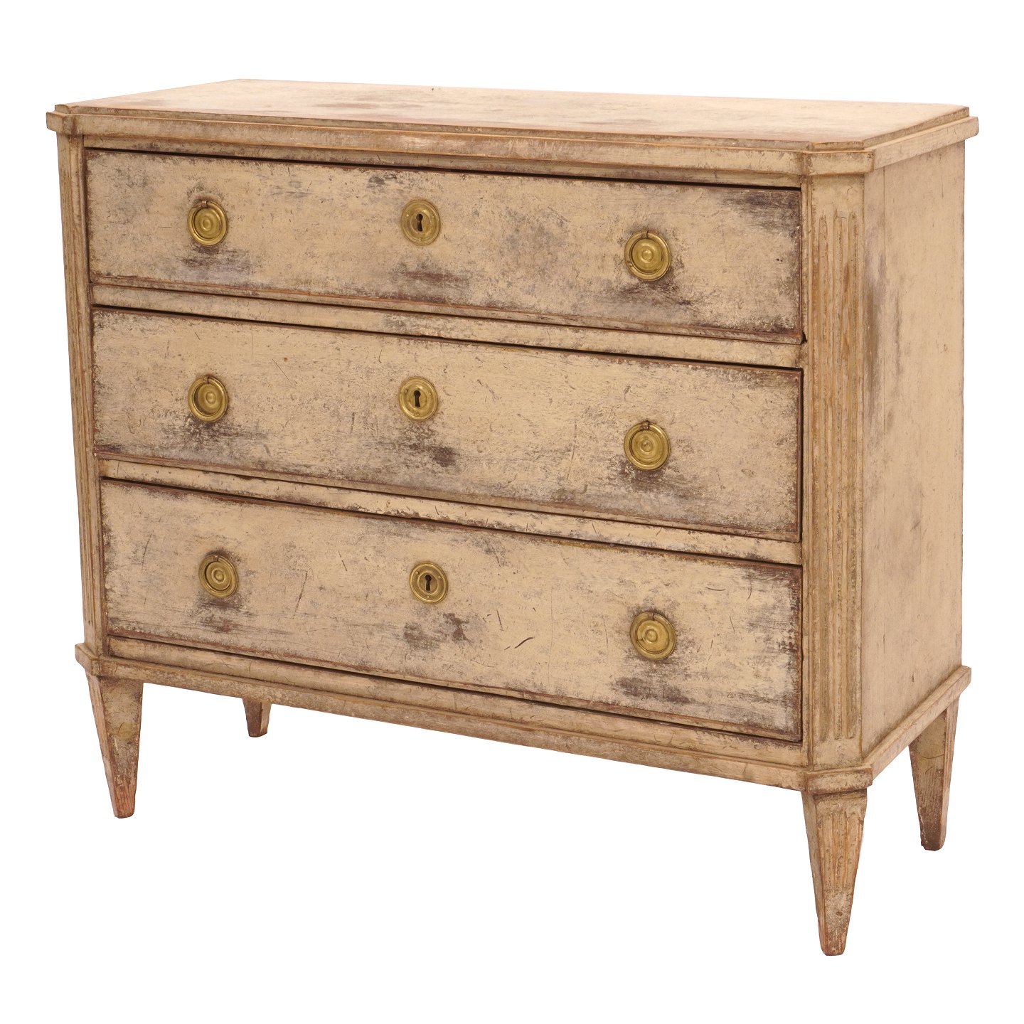 Gustaviansk kommode med tre skuffer kannelerede s