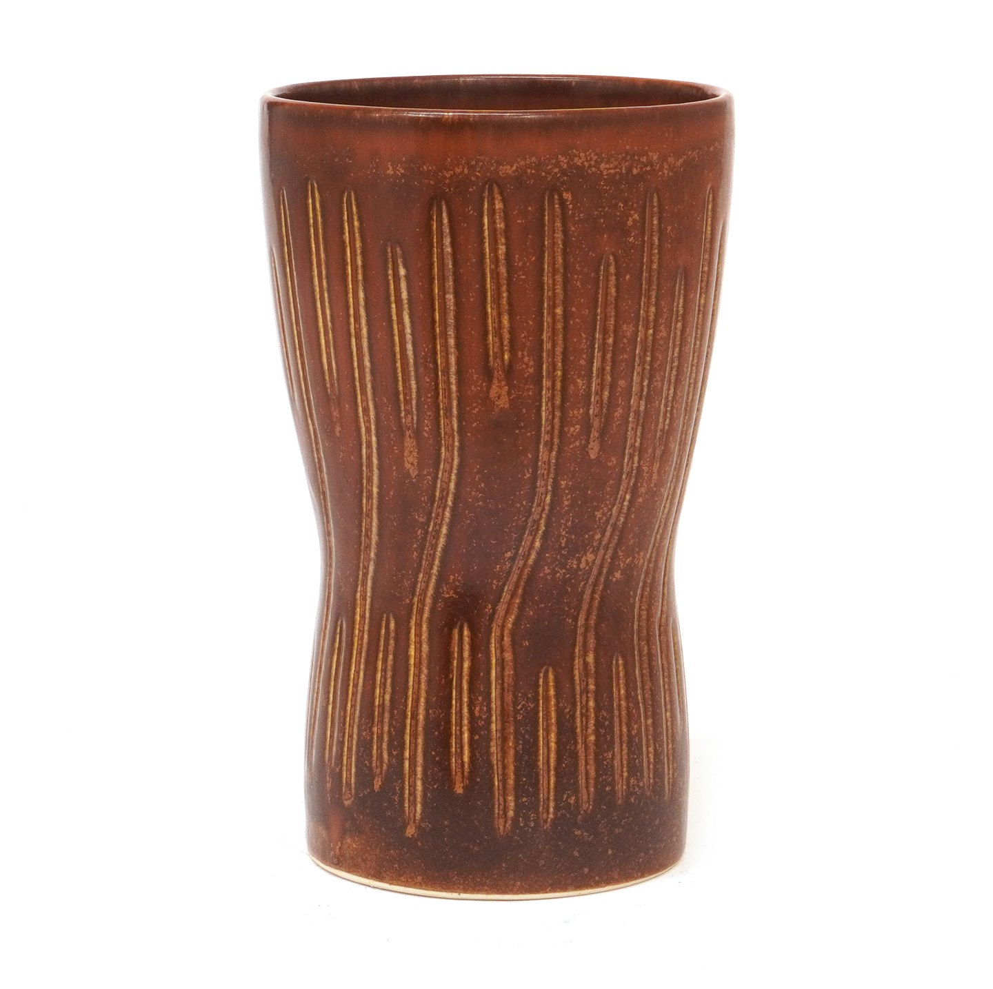 Saxbo vase af Eva Stær Nielsen nr. 174 dekoreret med riflet mønster. H: 19,5cm