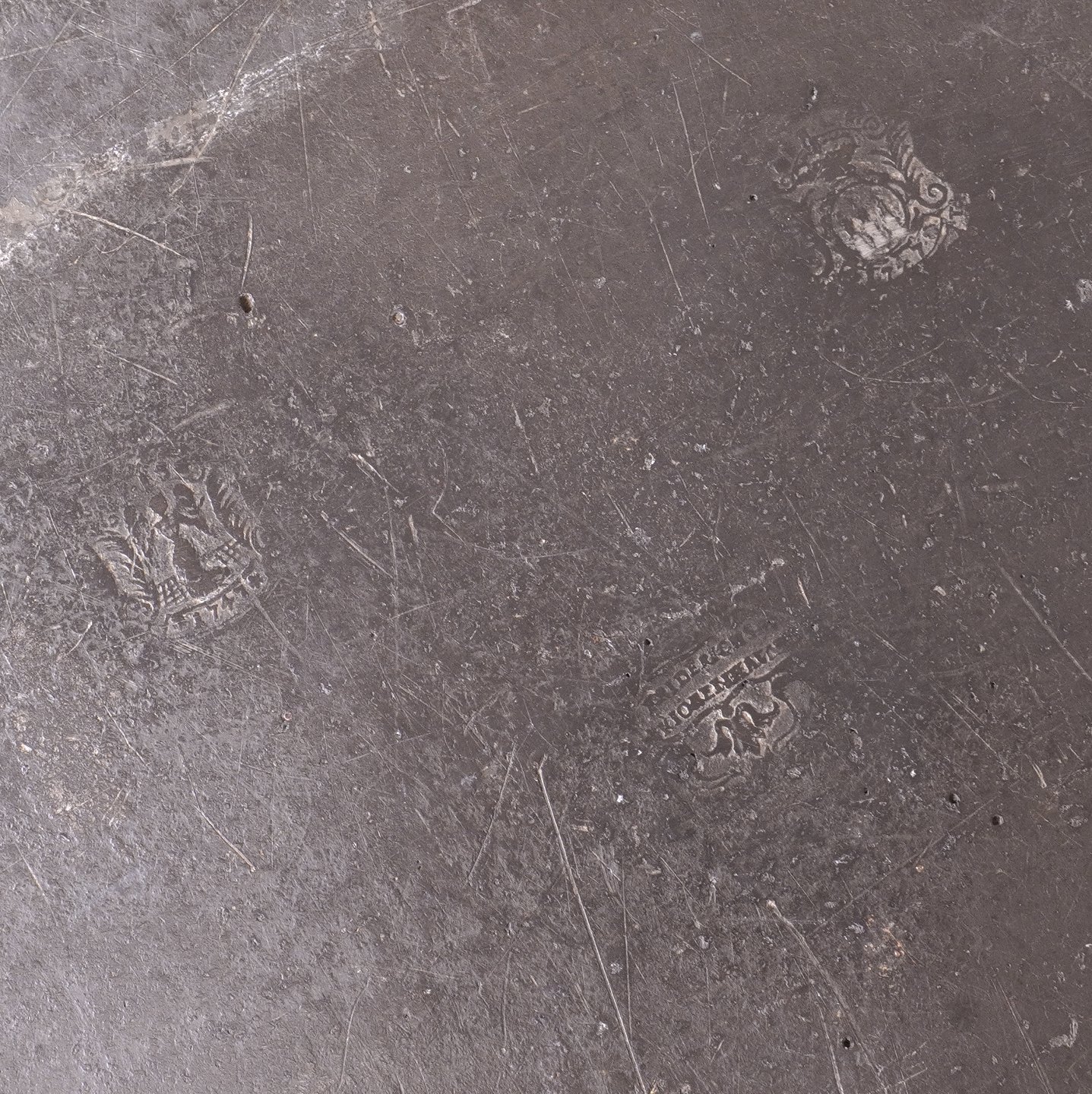 Tidligt og stort ovalt dyrerygsfad i tin udført af Friedrich Friedrich, København, 1747-1797, ca. år 1780