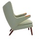 Hans J. Wegner Bamsestol med fodskammel. Hans Jørgen Wegner, 1914-2001, Bamsestol med fodskammel. Negle og håndtag udført i teak. AP19 og AP29. God stand med nyere polstring. Lette brugsspor