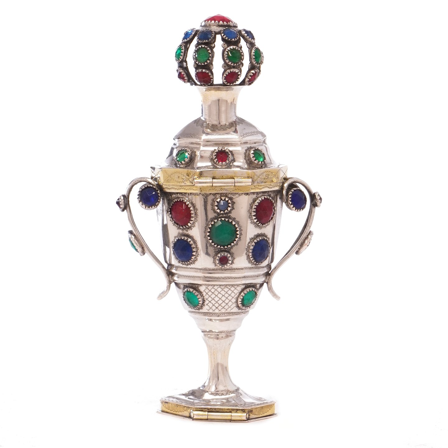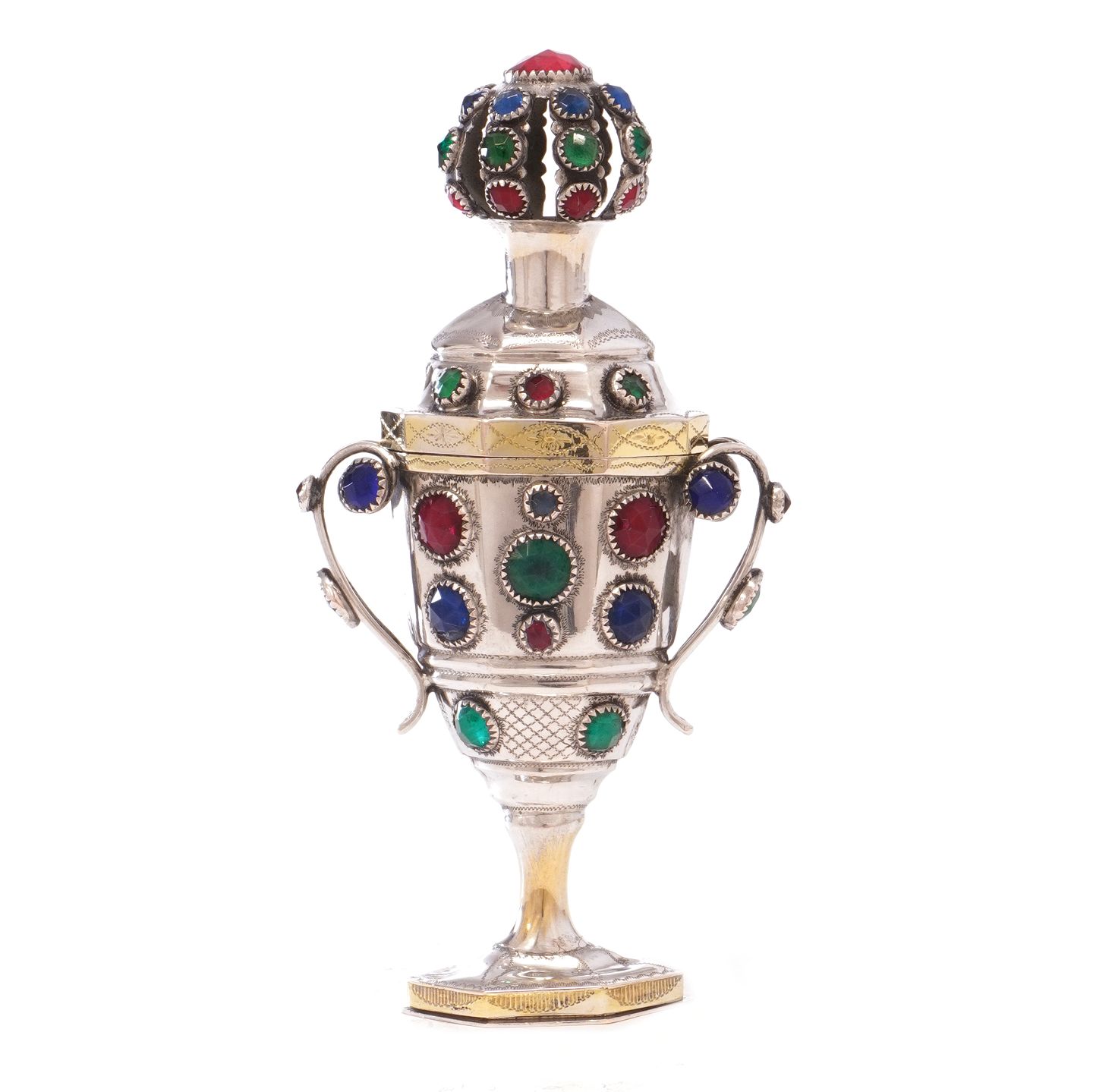 Hovedvandsæg i sølv med 57 flusser udført af Jens Jensen, Sønderborg, ca. år 1860. H: 13cm